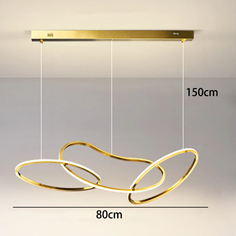 This Modern LED Pendant Ceiling Light offers versatile lighting options including single cold white or warm white, three-color changeable modes, remote-controlled dimming, and app-enabled brightness and color temperature adjustments. Available in sizes from 3 to 7 heads, with adjustable lengths ranging from 80cm to 180cm and a height of 150cm, it suits spaces between 10 to 30 square meters. Crafted from ironware and stainless steel, it supports voltages from 90V to 240V worldwide. Custom height, extended lengths, and advanced controls like AI voice integration are available upon request. Ideal for tailored, high-quality illumination.